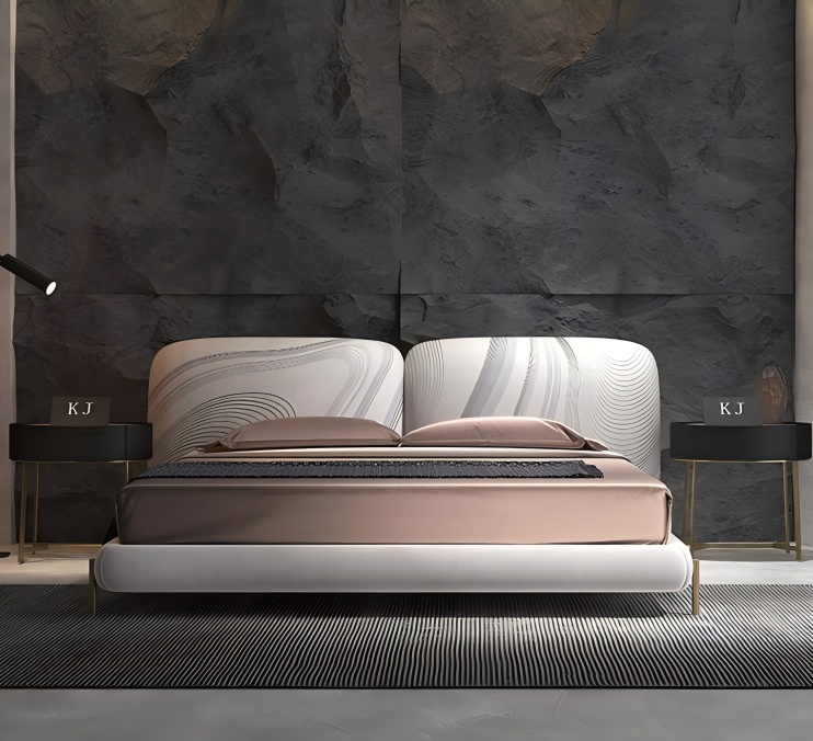 เลือก cowhide ชั้นบนสุดที่นำเข้าอิตาลีโดยใช้เทคโนโลยีการพิมพ์น้ำค้างแข็งนำเสนอพื้นผิวด้านที่ละเอียดอ่อนอบอุ่นและเป็นมิตรกับผิวหนังทนต่อรอยขีดข่วนและทนต่อการสึกหรอและง่ายต่อการดูแล เส้นเรียบง่ายที่มีการออกแบบควิลท์สามมิติตีความความสวยงามที่หรูหราต่ำคีย์ของความหรูหราแสงอิตาลี มุมเอียงสีทอง 45 °ของหัวเตียงนั้นอยู่ในสรีรศาสตร์ดังนั้นคุณจะไม่รู้สึกเหนื่อยแม้ว่าคุณจะพึ่งพามันเป็นเวลานาน