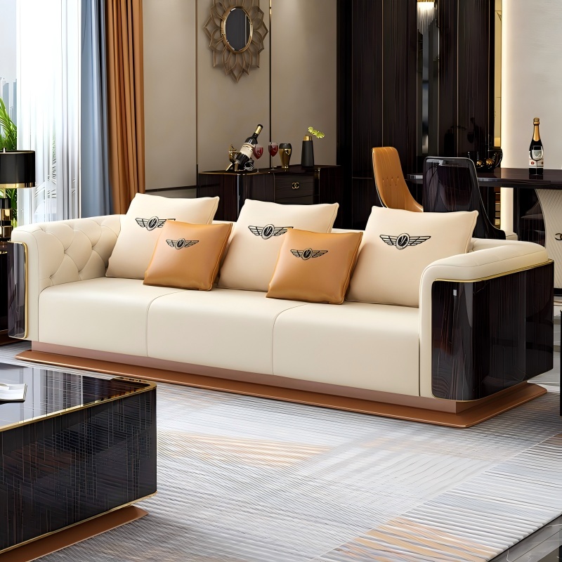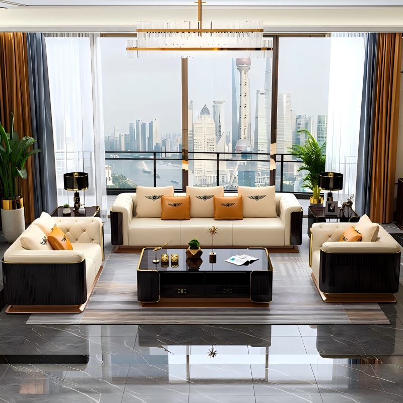 การออกแบบชุดค่าผสมฟรีแบบแยกส่วนช่วยให้คุณสามารถรวมโซฟาหลัก + เก้าอี้นอนยาว + ที่นั่งเดี่ยวเพื่อตอบสนองความต้องการทางสังคมของ 3-8 คน หนัง Nappa อิตาเลียนที่นำเข้านั้นจับคู่กับขาโลหะบาง ๆ นำเสนอสุนทรียศาสตร์ที่หรูหราแบบร่วมสมัย